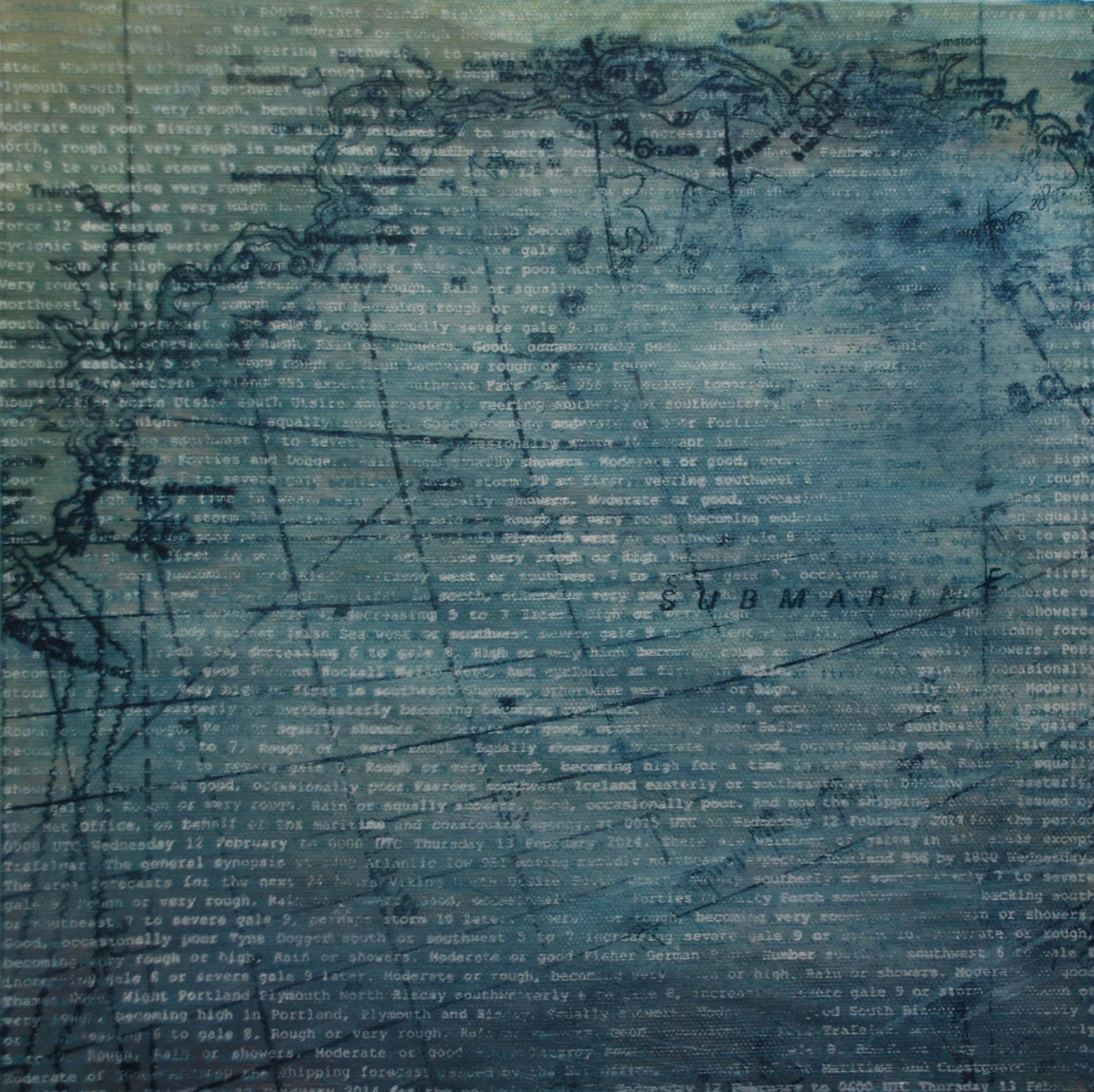 These paintings were the first small set using the 2011 shipping forecast with elements from sea charts.