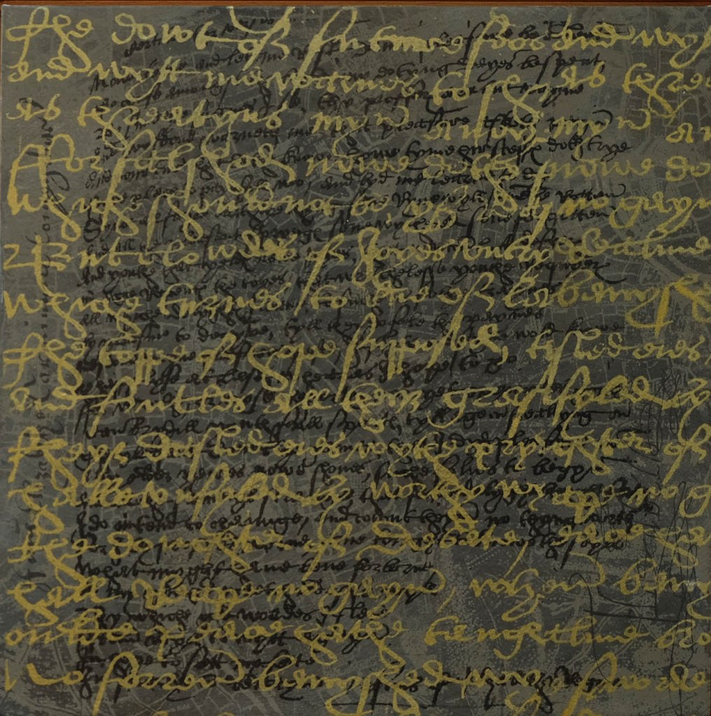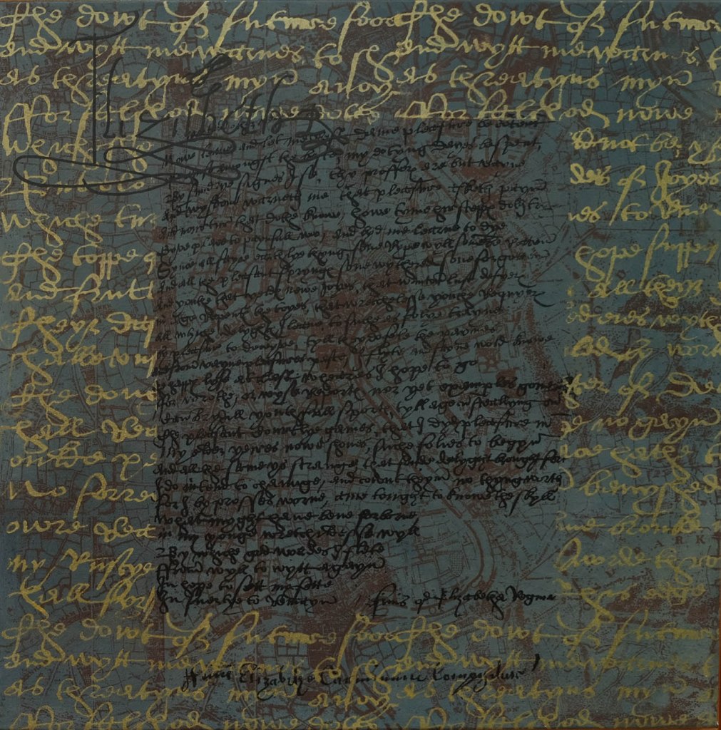 In 2024 I started on a new series of works based on the poems of Elizabeth 1. These would have been written by her scribe at the time. I chose ‘The Doubt of Future Foes’ a poem she wrote in 1568 at the height of her reign. It is a powerful work of poetry that showcases Queen Elizabeth I’s talents as a writer and her determination as a leader. The Queen was aware of the dangers that her country was facing, and this poem reflects her fears and doubts about the future. It is a testament to Elizabeth’s skill as a writer and her ability to use poetry as a political tool. It is also a reflection of the political and social context in which it was written and a reminder of the challenges that Elizabeth faced during her reign.