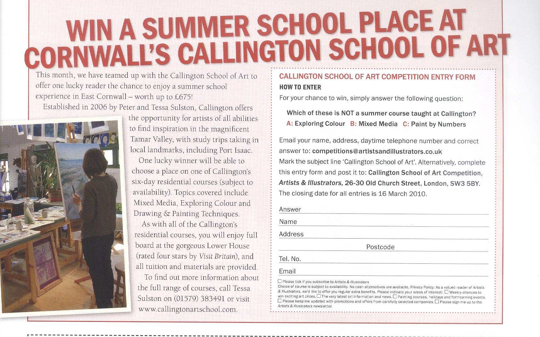 To find out more about the Callington School of Art and the courses they offer, call (01579) 383491 or visit http://www.callingtonartschool.com.